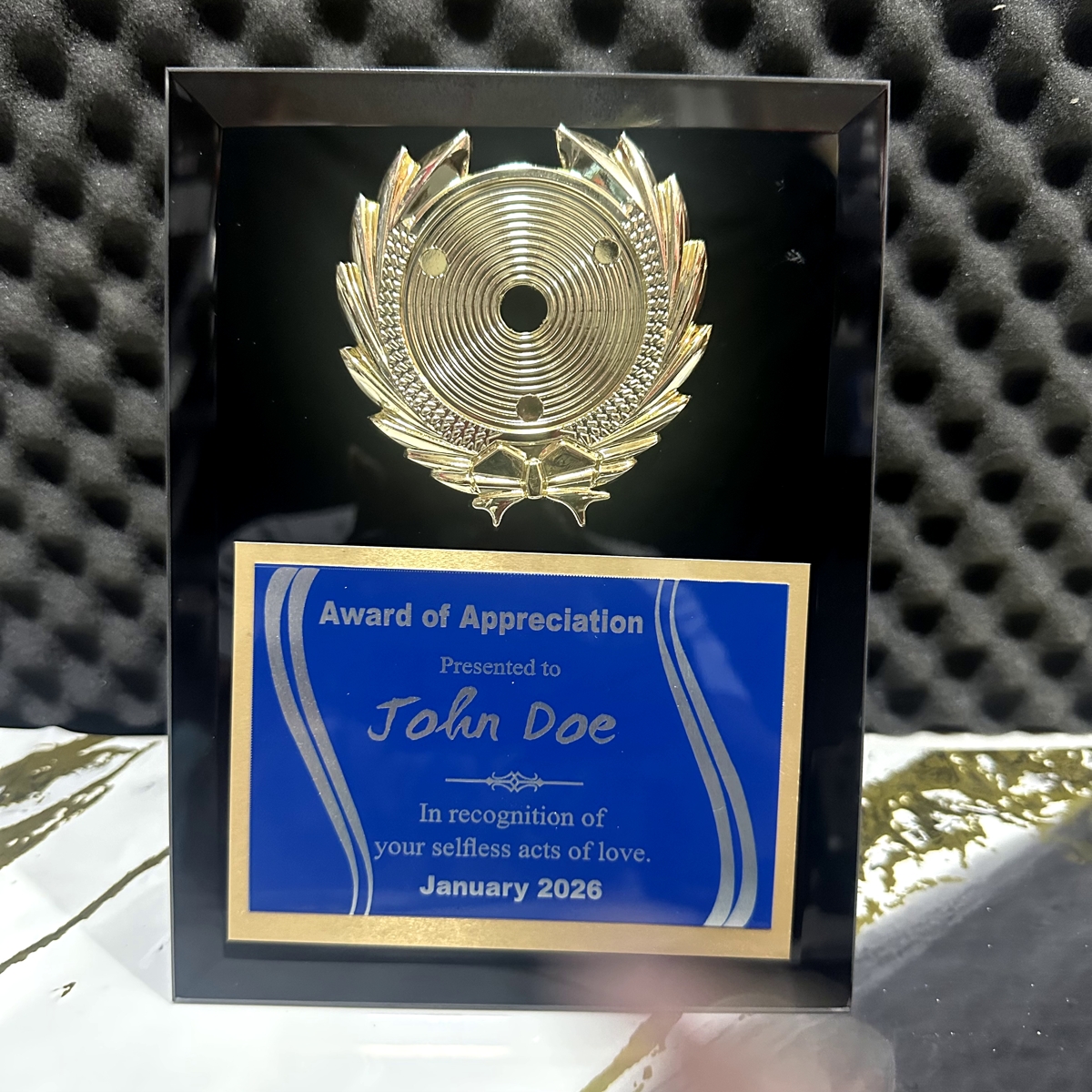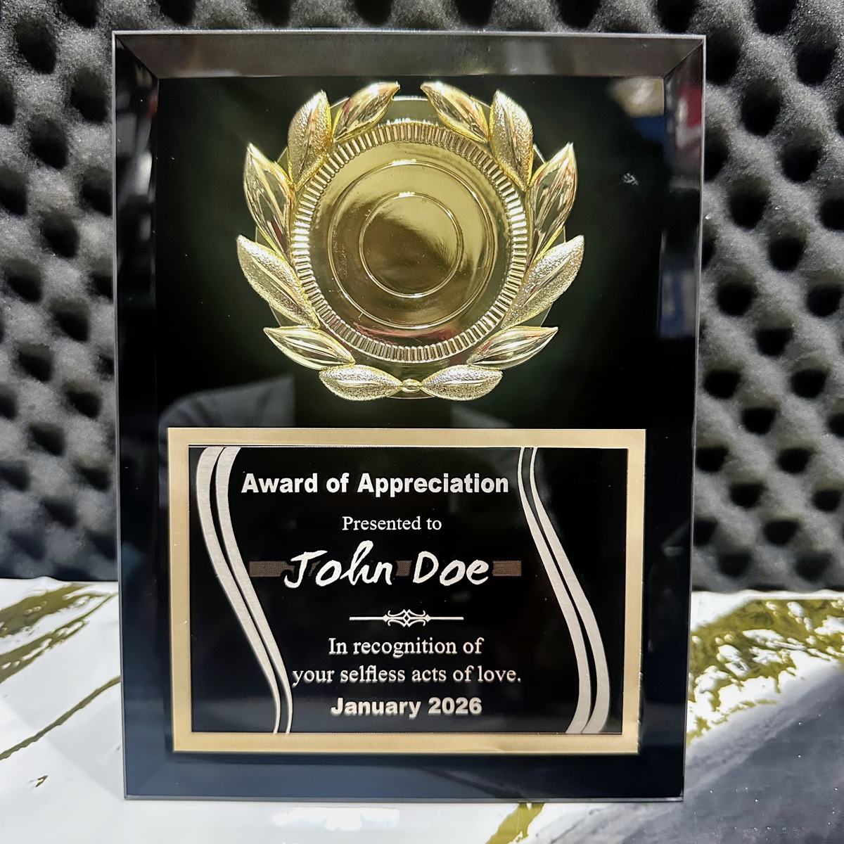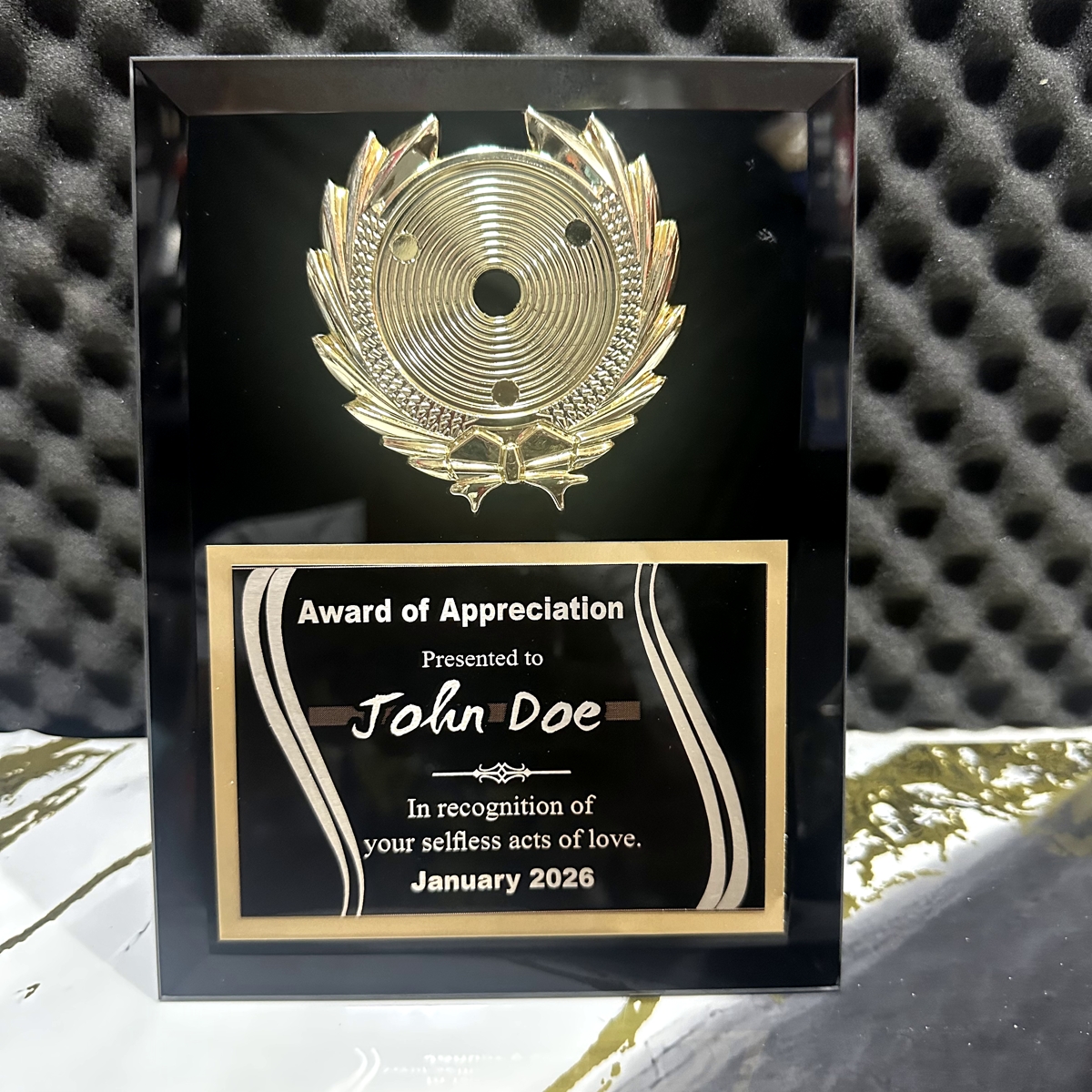 6×8 Glass/Mirror Plaque 2 Plate with Disc – Black