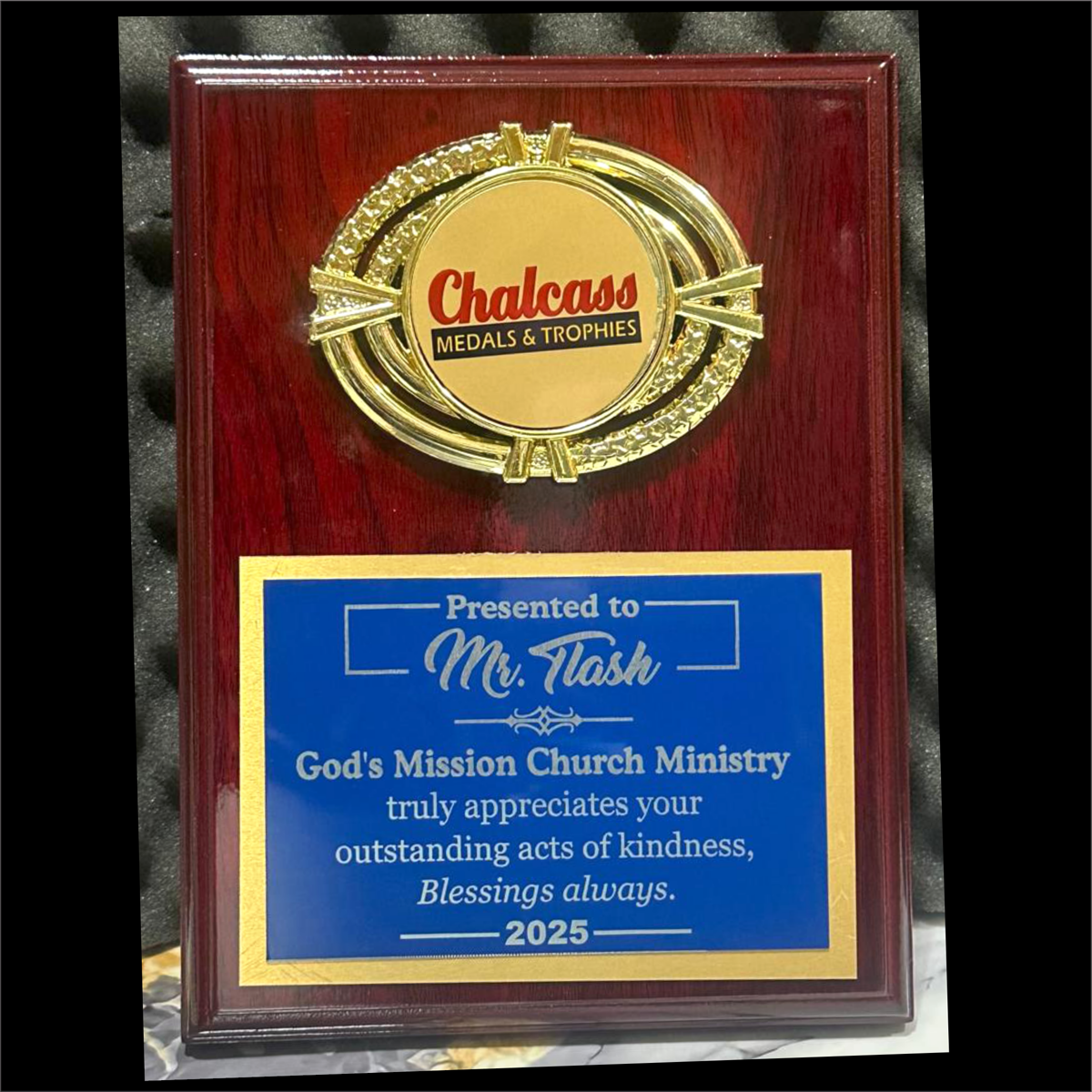 This plaque stands and hang